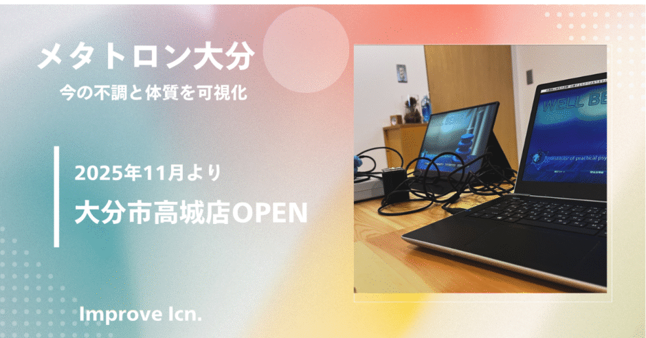 メタトロン大分は3年間出張で大分市で活動しておりましたが、この度色んな御縁に助けられ2025年11月より大分市高城に毎日ではないですが、メタトロン関連サービスとデトックスサロンサービスを一緒の場所で行う事ができる様になりました!